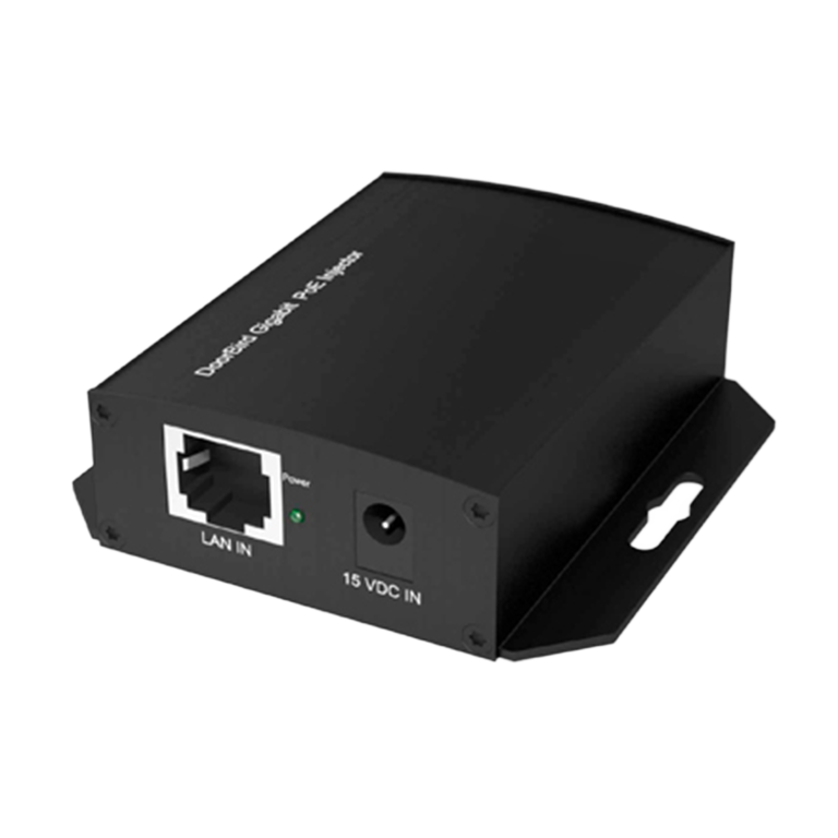 El DoorBird inyector PoE A1091 es un inyector PoE gigabit sólido y compacto, compatible con el estándar PoE IEEE 802.3af. Su carcasa de metal de alta calidad es apta para su instalación en paredes, techos o armarios de distribución. Puede utilizarse en todo lugar en el que haya dispositivos de red compatibles con PoE que requieran electricidad a través del cable de red.